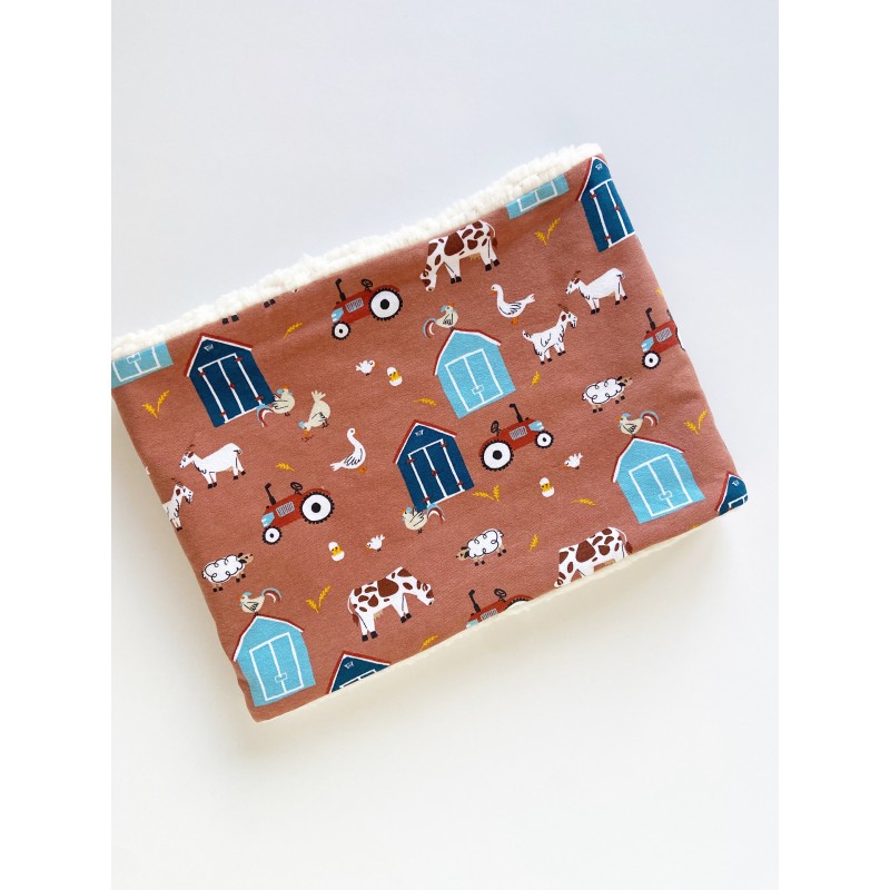 Cuello o Buff de punto jersey de algodón orgánico, su interior es de borreguito muy calentito, ideal para los días de frio.