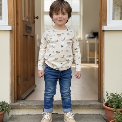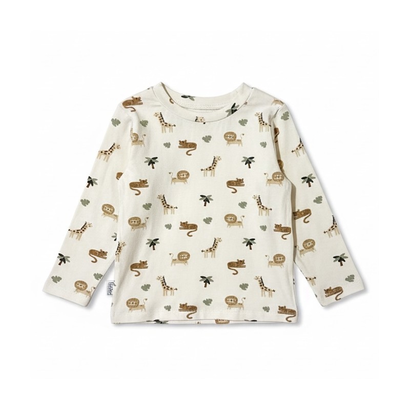 Camiseta básica de manga LARGA con estampado infantil en algodón orgánico. La flexibilidad del cuello hace que sea mas fácil de quitar y poner, son suaves y cómodas.